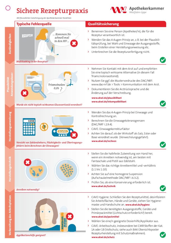 Sind Ihnen mögliche Fehlerquellen, Tipps und Vermeidungsstrategien auf der Rezepturkarte der AKWL bekannt? Hätten Sie in den genannten Fällen die richtige Lösung parat gehabt?