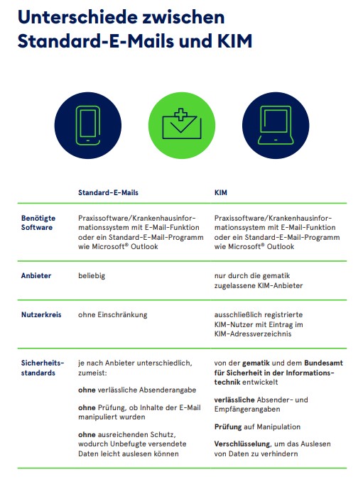 Einen Überblick über die Unterschiede zwischen einer Standard-Mail und KIM finden Sie in der nachfolgenden Grafik:
