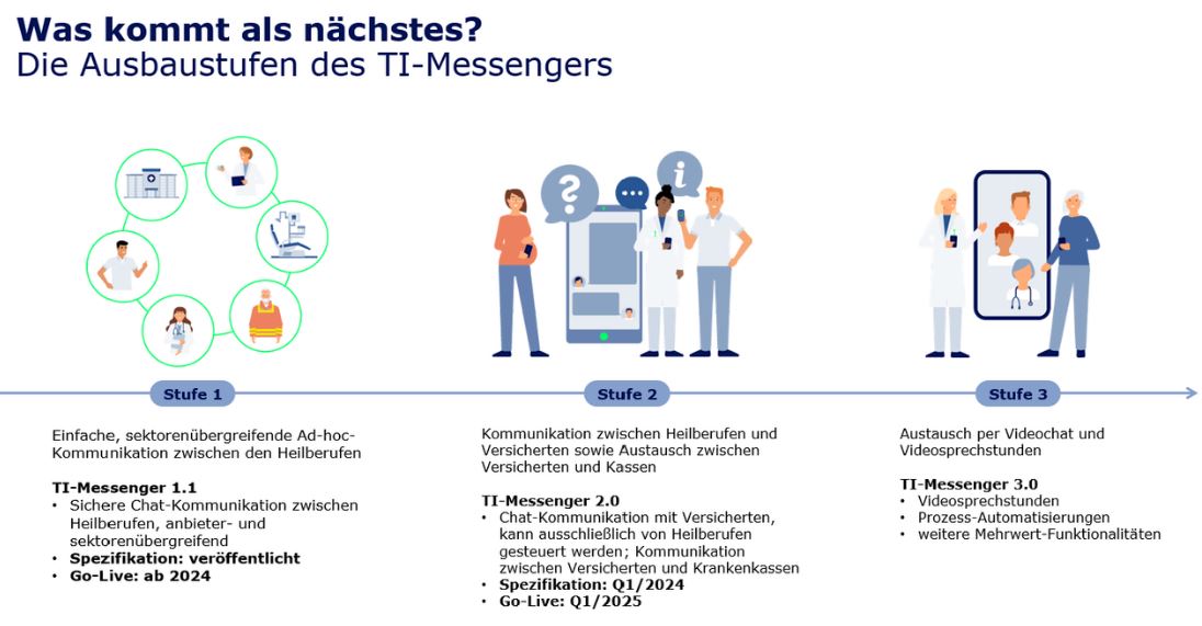Nachstehend sehen Sie die geplanten Ausbaustufen des TI-Messengers: